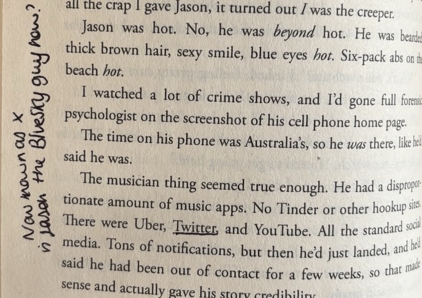 I annotated nearly every chapter—Jason’s texts had me smiling, Sloan’s flashbacks made me cry, and there were several moments where I just wrote “💔” in the margin and stared into space. This is that kind of book.