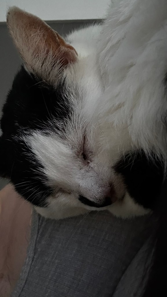 Afterwards, I reward her with chin cuddles or full-body drapes. She becomes my mattress. Everyone wins.